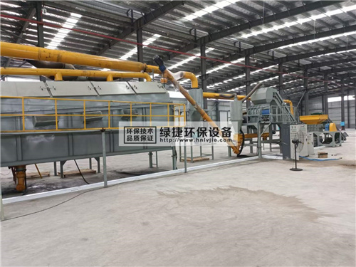 廢舊動(dòng)力電池磷酸鐵鋰極片回收處理設(shè)備安裝調(diào)試現(xiàn)場(chǎng)包括粉碎組件以及篩分組件,粉碎組件用于將物料進(jìn)行撕碎、破碎,篩分組件用于對(duì)撕碎料、破碎料進(jìn)行分類篩選。粉碎組件包括撕碎機(jī)以及破碎機(jī),撕碎機(jī)將外部報(bào)廢的鋰電池極片料和生產(chǎn)邊角料進(jìn)行撕碎,撕碎料通過皮帶輸送至破碎機(jī)進(jìn)行破碎生成破碎料。篩分組件包括滾筒篩、滾筒磁選機(jī)、磨粉機(jī)、振動(dòng)篩以及Z形空氣分選機(jī),滾筒篩將破碎料進(jìn)行篩分,篩下物料為150目以下的黑粉并將篩上的物料由滾筒磁選機(jī)將物料中的鐵分離出,磨粉機(jī)將鐵分離后的物料進(jìn)行磨粉后由振動(dòng)篩進(jìn)行篩選后由所述Z形空氣分選機(jī)選出物料中的纖維類輕質(zhì)物料。