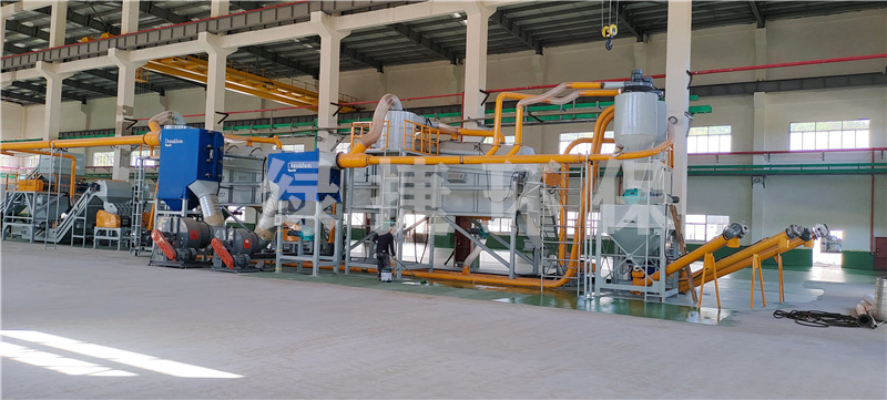 粉碎脫粉分選:經(jīng)過烘干后的物料依次進(jìn)入粉碎機(jī),脫粉,磁選外殼,研磨機(jī)