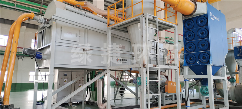 烘干:破碎后的物料含有電解液、隔膜、塑料以及極粉涂敷材料PVDF等有機(jī)物,將有機(jī)物無害化處理。