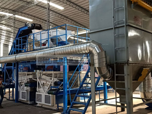 3、氣流分選機(jī)可以分選出物料中的大部分鋁,提高整套系統(tǒng)的分選效率,氣流分選機(jī)內(nèi)部設(shè)有風(fēng)機(jī),破碎后的物料進(jìn)入氣流分選機(jī)后,在自身密度和風(fēng)力的作用下,較輕的鋁會落到氣流分選機(jī)內(nèi)部更遠(yuǎn)的地方,從而分選出物料中的大部分鋁。