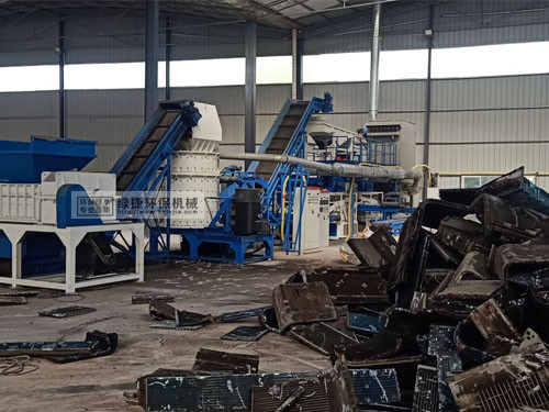 散熱器先經(jīng)輸送機(jī)送入雙軸撕碎機(jī)進(jìn)行初級(jí)破碎,雙軸撕碎機(jī)將散熱器擠壓、撕裂,破碎成小塊,然后再經(jīng)輸送機(jī)送入立式破碎機(jī)中進(jìn)行二次破碎,錘式破碎機(jī)將散熱器碎片充分解離,并擠壓、揉搓成高密度的球團(tuán)狀,破碎后的小顆粒由磁選機(jī)將物料中的鐵分選出來,剩余的銅和鋁進(jìn)入比重分選機(jī),進(jìn)行精細(xì)分選,分選出剩余的銅和鋁。